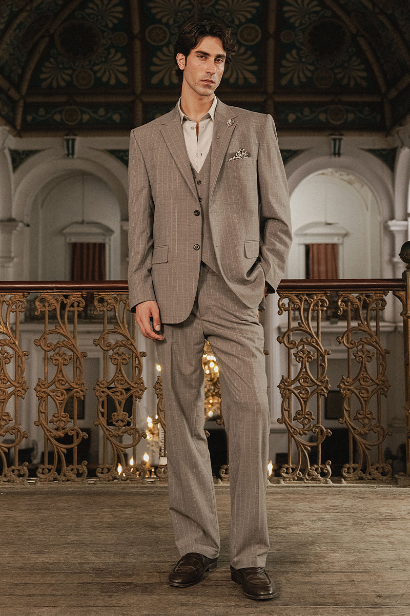 Taupe button-down shirt in tailored fit, crafted from a silk-blend fabric, featuring a classic french collar and buttoned sleeves for a smooth and refined look.