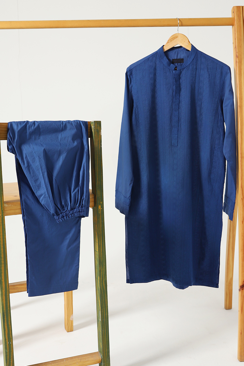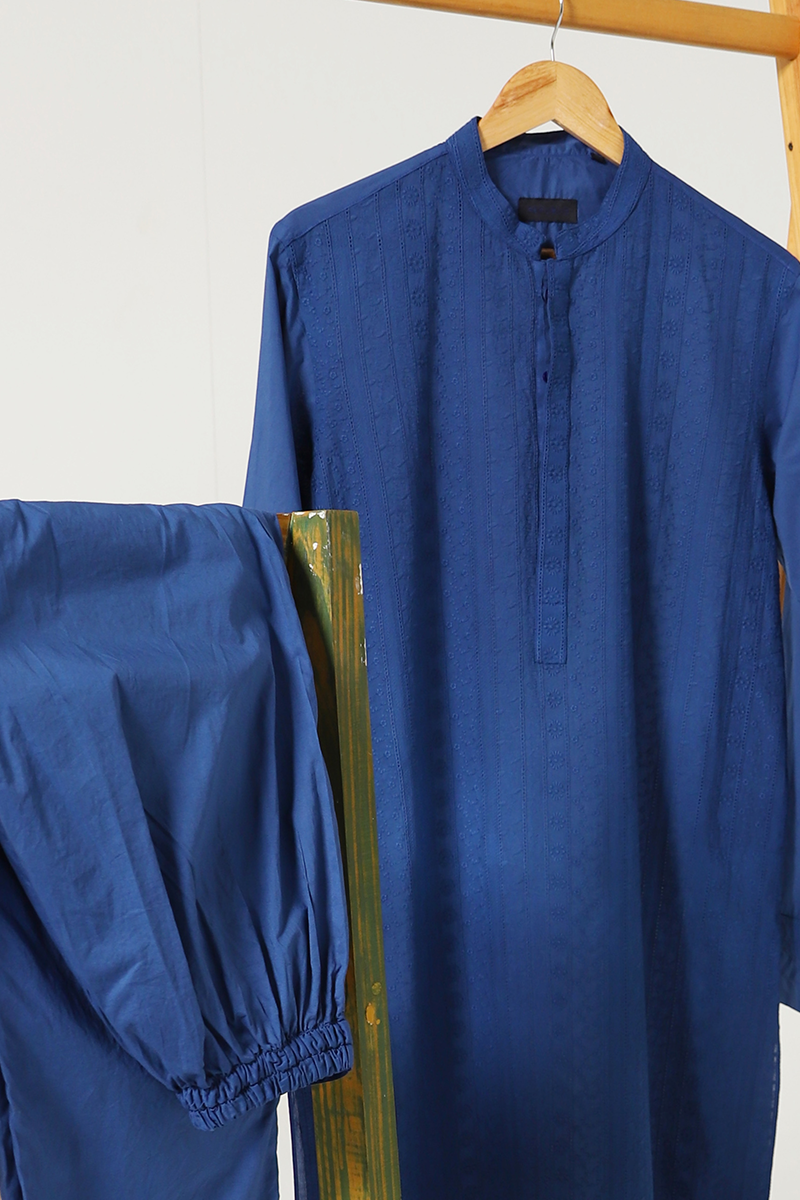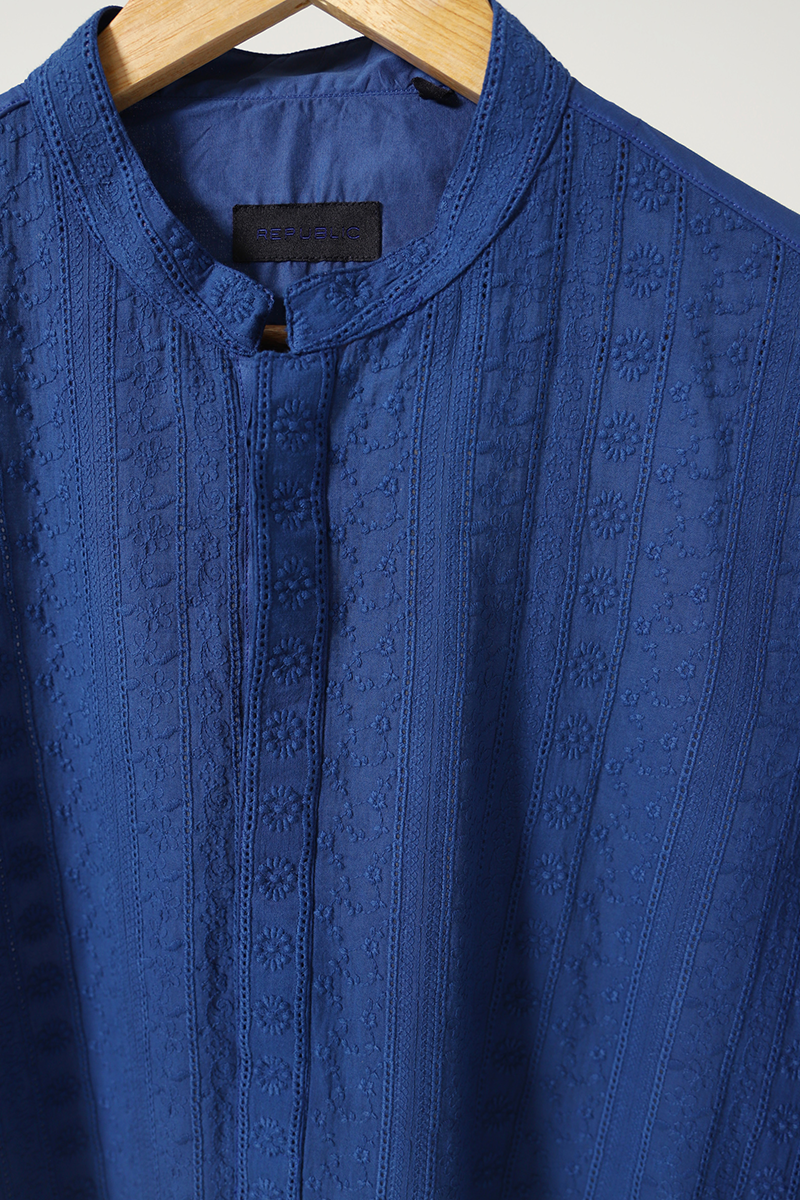 Royal blue chicken Kari front panel with plain sleeves and back in 100% cotton.